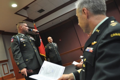 H. R. McMaster, at center, is introduced at a 2009 Pentagon event by Colonel Christopher Gibson, left. McMaster is a Hoover Institution research fellow and major general, and Gibson—now retired from the Army and serving in Congress—is a former Hoover national security fellow.