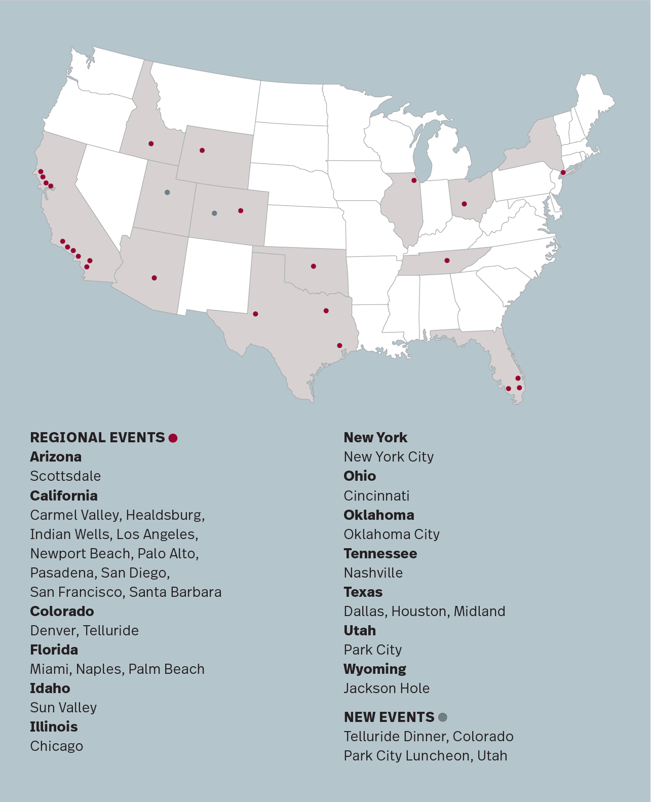 The Hoover Institution hosts conferences and events across the country for our major donors and to introduce new individuals to our mission and our fellows. Beyond our major events such as the Fall Retreat and Vertex Forum, we hosted 46 regional in-person events and continued to host the popular Hoover Insider Policy Briefing Series, a private webinar series allowing Hoover scholars to discuss important policy issues with our major donors in an interactive environment.