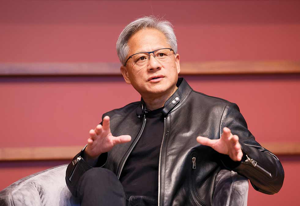 NVIDIA CEO Jensen Huang speaks in Hauck Auditorium at the Fall Board of Overseers Meeting on October 18, 2024.