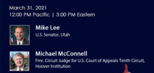 Senator Mike Lee in conversation with Michael McConnell on Wednesday, March 31, 2021 at 3:00 PM ET. Hoover Institution, Stanford University