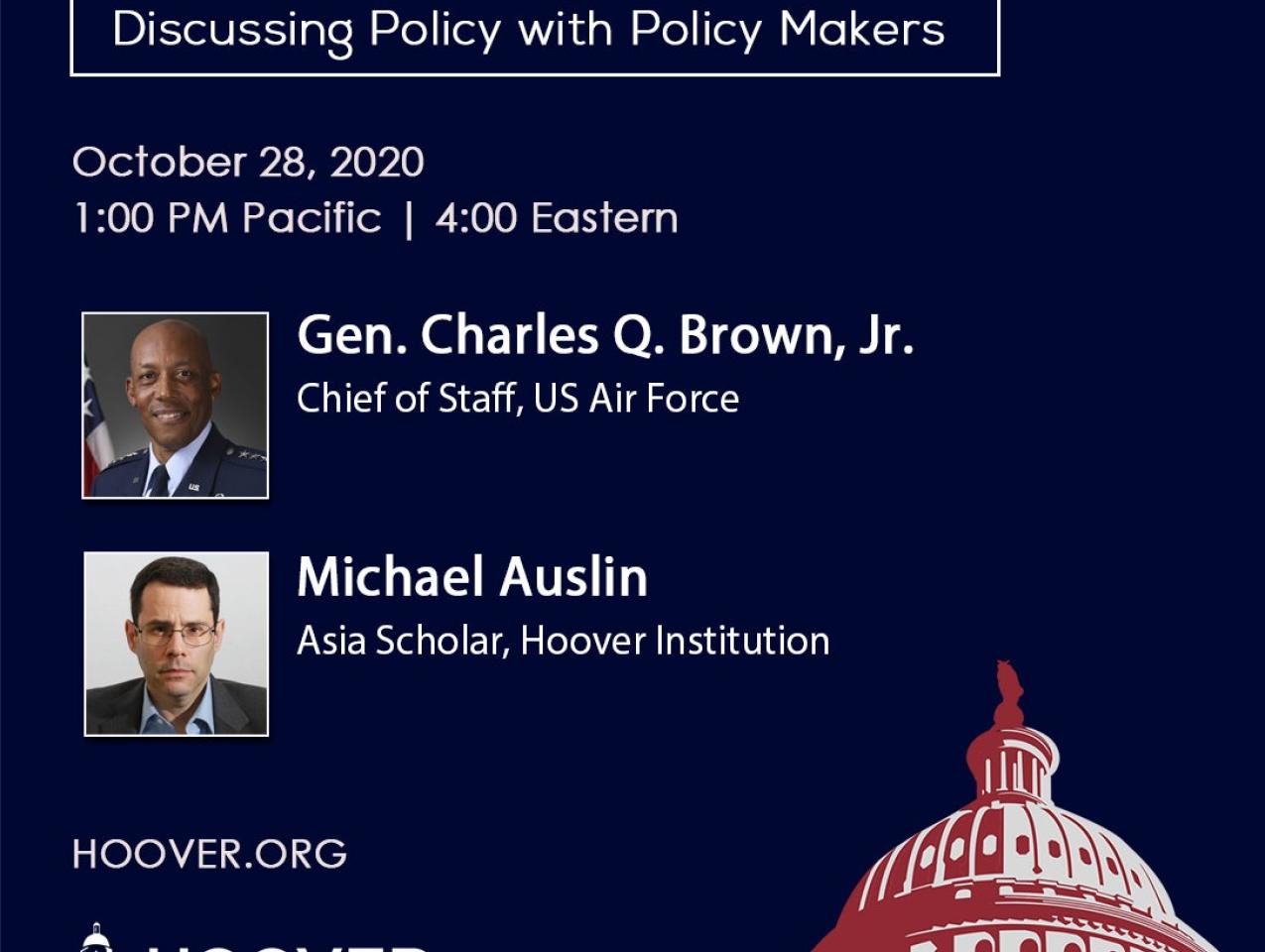 US Air Force Chief of Staff, Gen. Charles Q. Brown and Michael Auslin discussed Accelerate Change or Lose on Capital Conversations on October 28, 2020.
