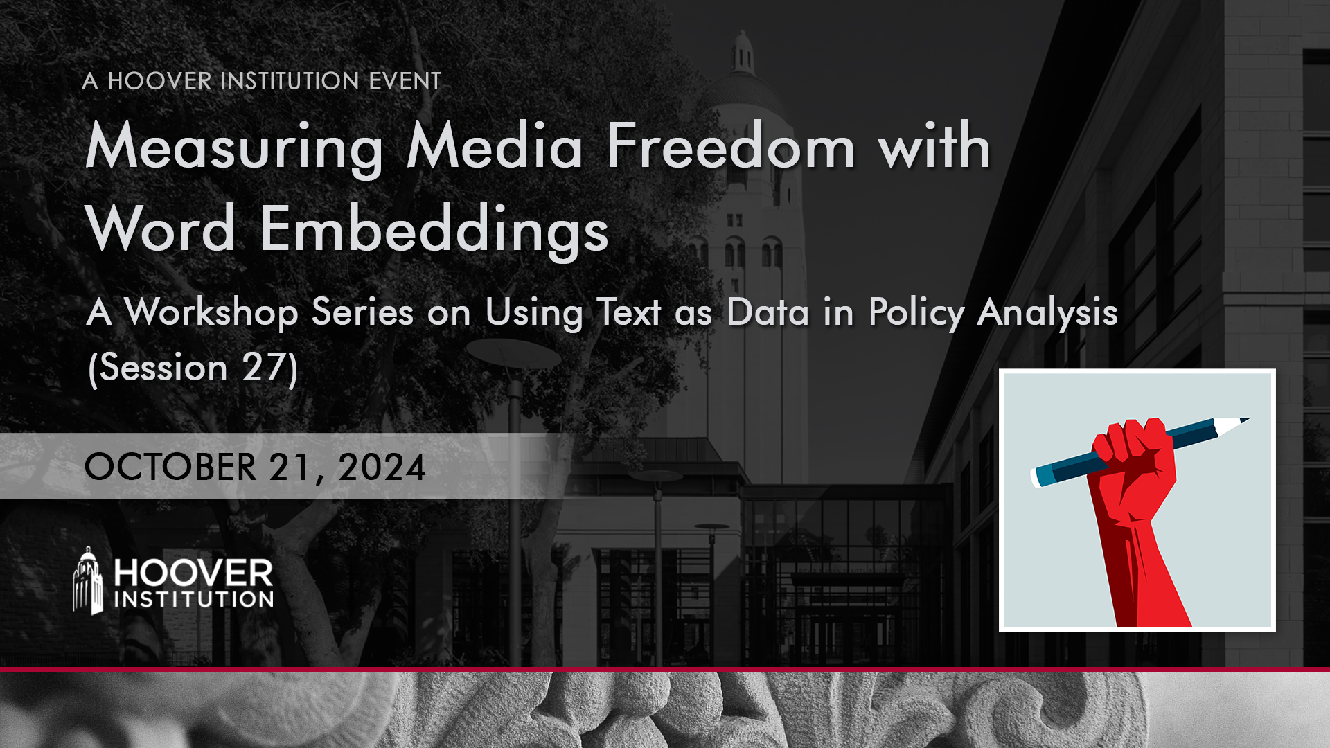 The Hoover Institution Workshop on Using Text as Data in Policy Analysis showcases applications of natural language processing, structured human readings, and machine learning methods to analyze text as data for examining policy issues in economics, history, national security, political science, and other fields.