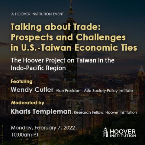 The Hoover Institution hosts Talking about Trade: Prospects and Challenges in U.S.-Taiwan Economic Ties on Monday, February 7, 2022 at 10:00 a.m. PT.