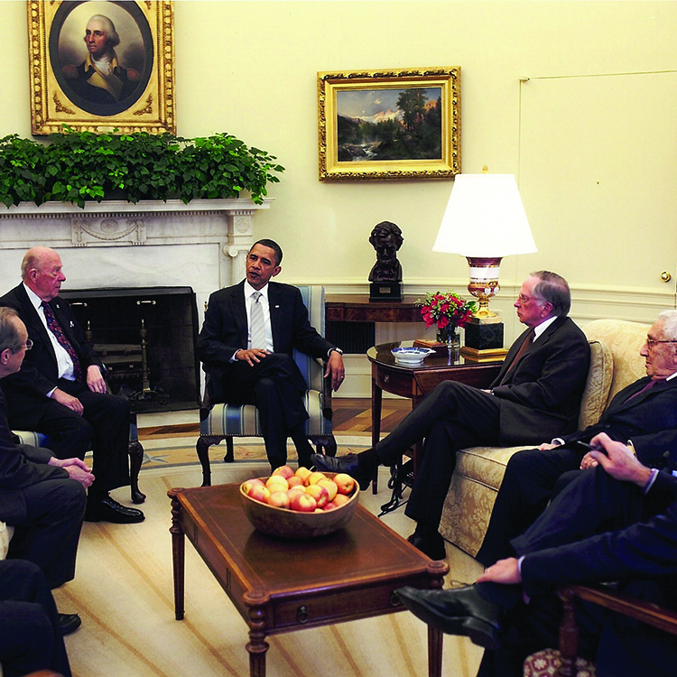 George P. Shultz with Barack Obama in the Oval Office