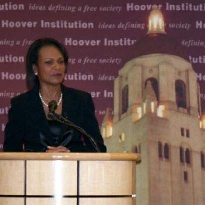 STANFORD—“The individual spirit is an extraordinary thing; it can and it will triumph, but it triumphs most in freedom,” said Condoleezza Rice, the Thomas and Barbara Stephenson Senior Fellow on Public Policy at the Hoover Institution. Rice spoke on family, civil rights, and her role as secretary of state at the Hoover Institution’s October retreat.