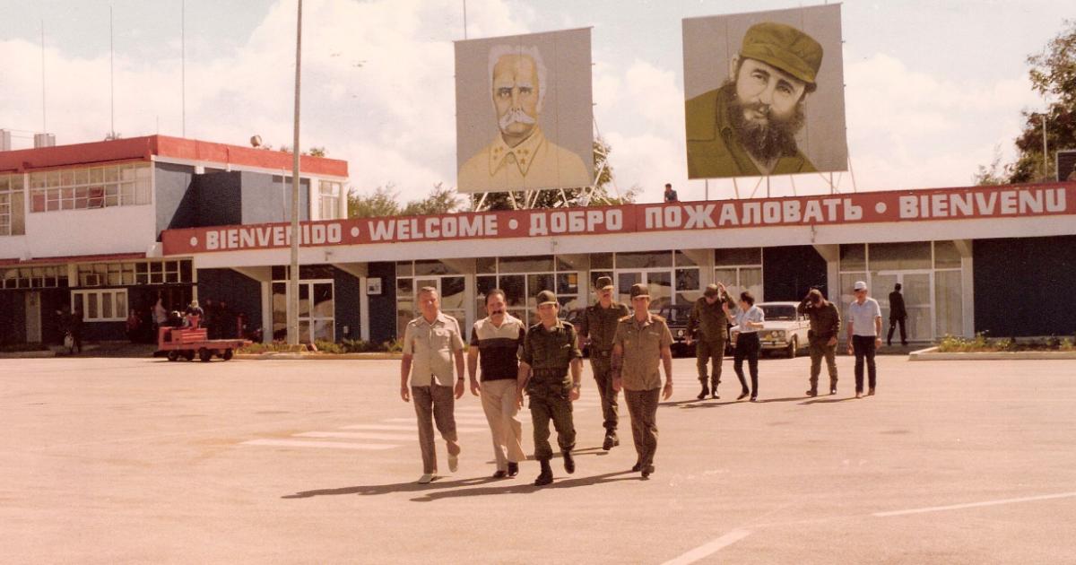Above: General Czesław Kiszczak (first from left) arrives at the airport in Holguín, Cuba