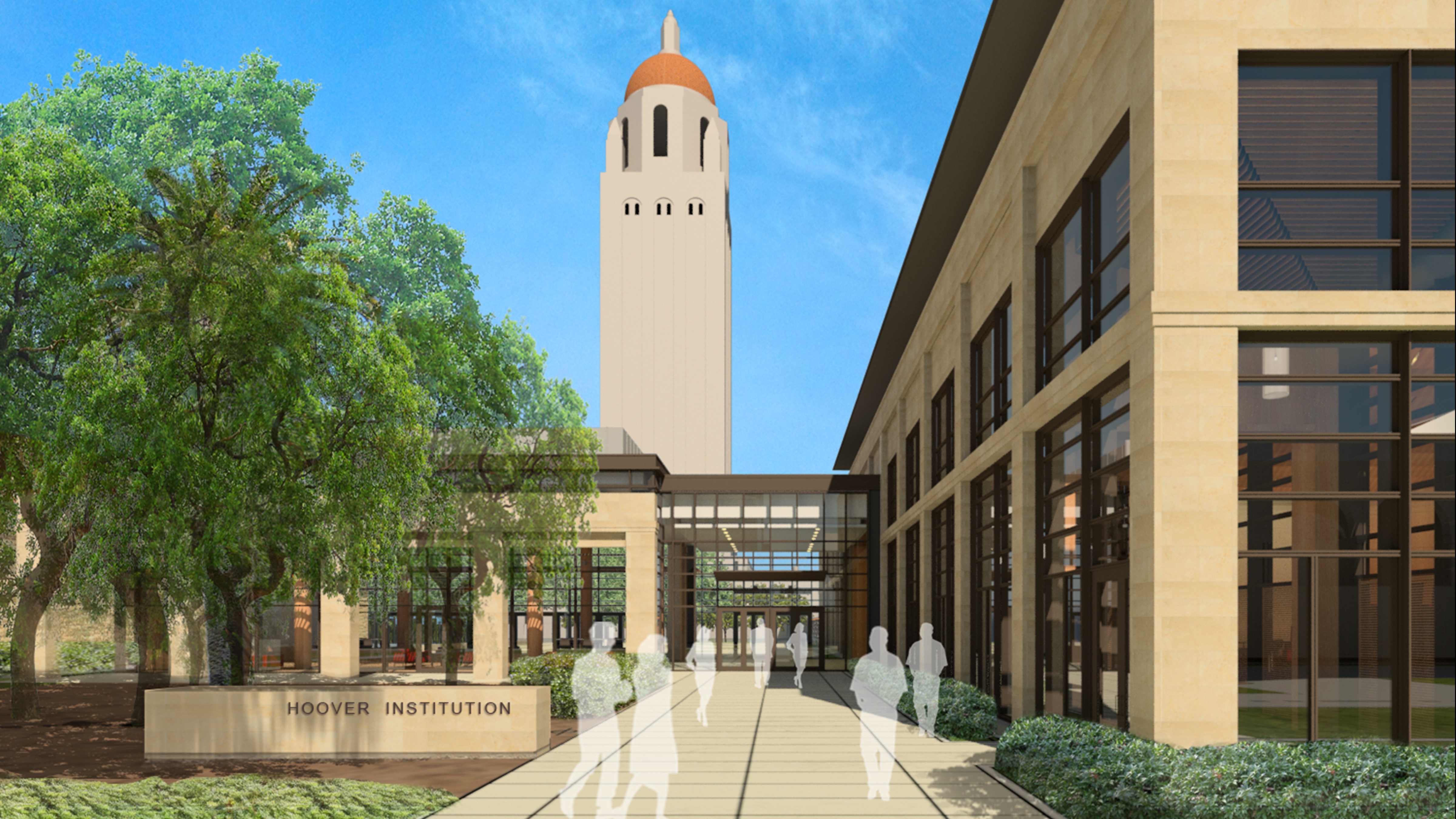 Named for its primary and generous benefactors, David and Joan Traitel, the Hoover Institution’s new two-story building will house on its ground floor a 400-seat auditorium named in honor of Everett “Sparky “ Hauck and his wife, Jane, and a 440-seat dining and multipurpose room, Blount Hall, in honor of Bill Blount. Traitel, Hauck, and Blount are longtime members of the Hoover Board of Overseers, with Traitel chairing the board from 2008 to 2010. The second floor will feature seventy-five offices, conference rooms, and workstations to accommodate the increasing activity Hoover’s fellows. The new site will also feature a welcoming pavilion. A beautiful courtyard and open space will be named in honor of Hoover overseer Art Hall and his wife, Joanne.