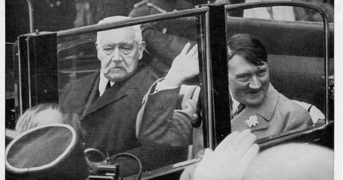 Above: German president Paul von Hindenburg and chancellor Adolf Hitler riding in the 1933 May Day parade in Berlin.