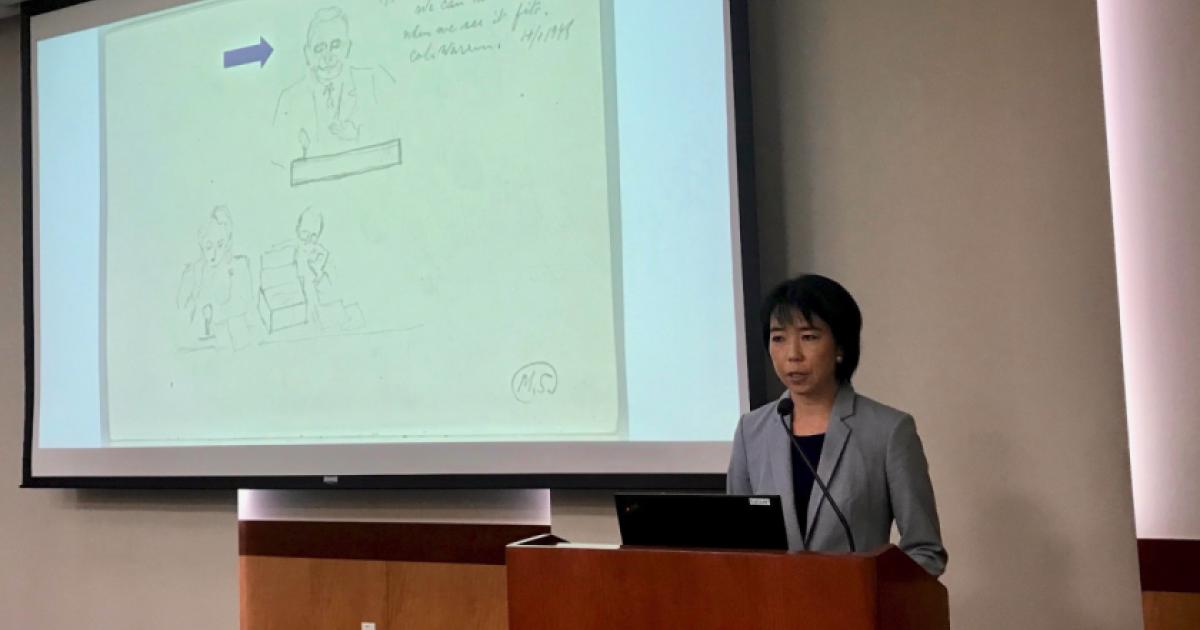 On May 8, Hoover Library & Archives welcomed Yuma Totani, professor of history at the University of Hawaii and a Hoover visiting fellow, who discussed her work on the International Military Tribunal for the Far East in conjunction with recently acquired digital images of sketchbooks of the Tokyo Trial by Shigemitsu Mamoru, Minister of Foreign Affairs for Japan.