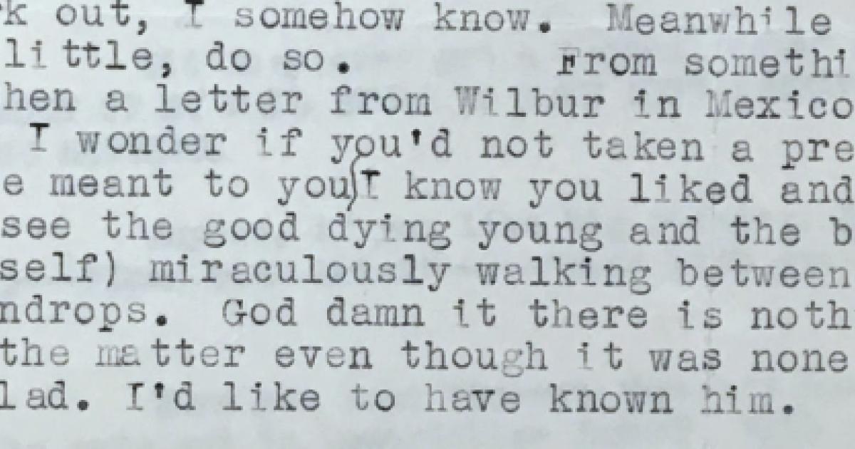 “Whatever he meant to you I know you liked and admired him and we get lonely and we see the good dying young and the bad, or at least mediocre (such as myself) miraculously walking between the bombs as if they were raindrops.”