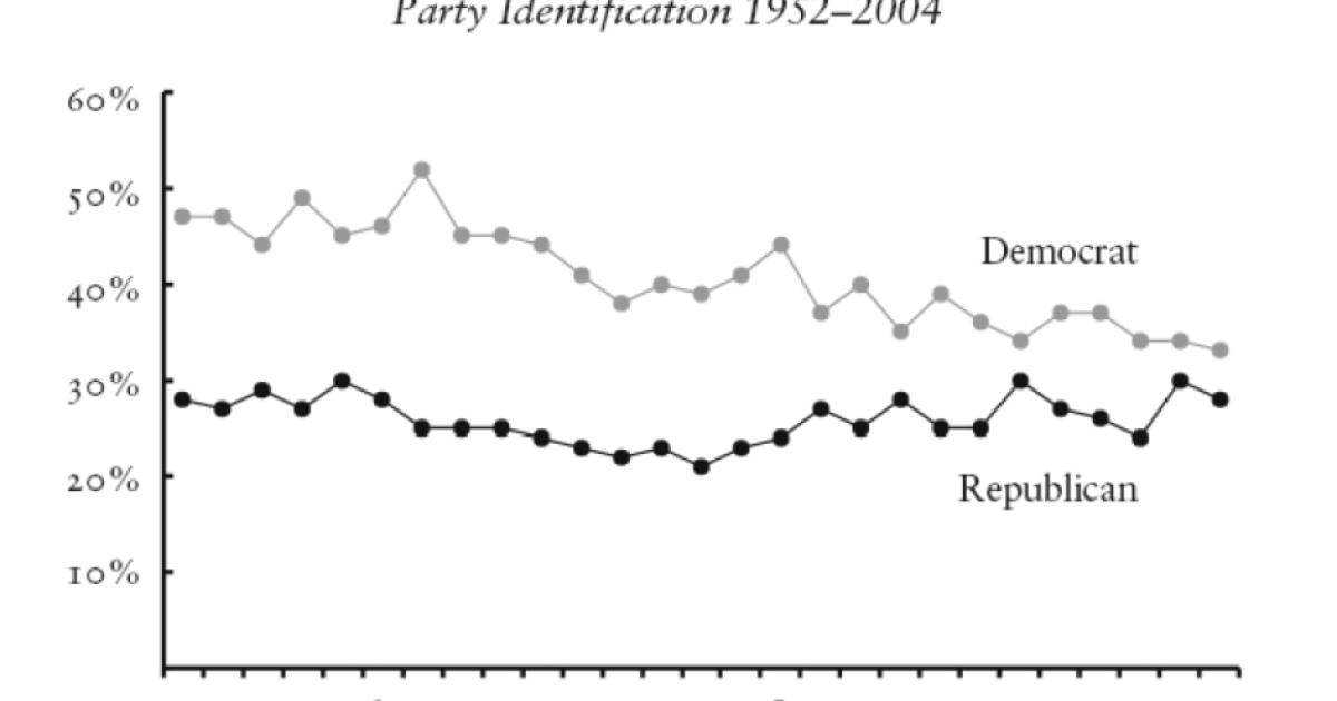 After any electoral defeat, there is always a predictable debate between those who attribute the loss to a compromise of principles versus those who think not enough was compromised. The post-election analysis among Republicans will have to deal with the question of declining membership and what issue-position mix will bring back lost members and appeal to independents. The declining Republican base makes it obvious that purity on social issues is an unpromising strategy for a conservative party that needs to widen its appeal. A political party that starts an electoral cycle with 7 percent fewer party identifiers than its competitor and a base that prefers policies to the right of independents and moderates is set up for a long, dry run similar to that of the post-fdr era Republicans.