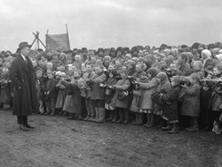 | Greeting the arrival of American corn at Vasil’evka, April 10, 1922. Photo from the Hoover Institution Archives.