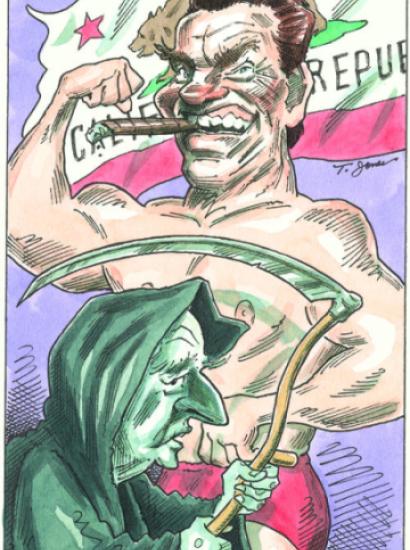 In Schwarzenegger’s place: a bad-news, bad-cop governor. Awakened from his long gubernatorial nap, Brown delivered little in the way of optimism and long-term vision, and not the faintest glint of Hollywood magic. Brown’s script is the mammoth budget deficit. First he broke with tradition by eschewing a State of the State address (when your main obsession is the budget, why bother with a policy agenda?). Proving he could be a Grinch well after the holiday season, Brown seized tens of thousands of state workers’ cell phones. (During his first stint as governor, recall that Brown was known for sending frugal signals such as swapping the official limousine for a Plymouth he drove to work himself.) That was after he released a state budget that was equal parts spending cuts and tax increases, thus setting the newly returned governor on a collision course with tax-loathing Republican legislators, whose buy-in Brown needed to put his tax proposal on the ballot for a June special election. Not since Dean Wormer declared “no more fun of any kind” in Animal House, it seems, had an authority figure seemingly taken this much relish in spreading misery.