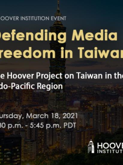 The Hoover Institution hosts Defending Media Freedom in Taiwan on Thursday, March 18, 2021 from 4:30 p.m. - 5:45 p.m. PDT.