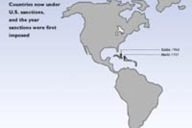 | U.S. ECONOMIC SANCTIONS: Countries now under U.S. sanction, and the year sanctions were first imposed. | |