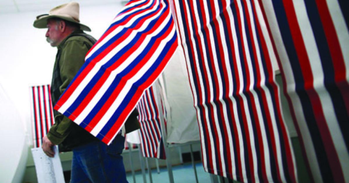 A man emerges from a voting booth in Deerfield, New Hampshire, after casting his vote in the primary election in January. Research suggests that although Americans may be more culturally inbred than a generation ago, geographic political sorting has little or nothing to do with it.
