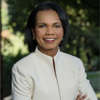Condoleezza Rice is the Tad and Dianne Taube Director of the Hoover Institution and the Thomas and Barbara Stephenson Senior Fellow on Public Policy. She is the Denning Professor in Global Business and the Economy at the Stanford Graduate School of Business. In addition, she is a founding partner of Rice, Hadley, Gates & Manuel LLC, an international strategic consulting firm. From January 2005 to January 2009, Rice served as the 66th Secretary of State of the United States, the second woman and first black woman to hold the post. Rice also served as President George W. Bush’s Assistant to the President for National Security Affairs (National Security Advisor) from January 2001 to January 2005, the first woman to hold the position. Rice served as Stanford University’s provost from 1993 to 1999, during which time she was the institution’s chief budget and academic officer. As Professor of Political Science, she has been on the Stanford faculty since 1981 and has won two of the university’s highest teaching honors. From February 1989 through March 1991, Rice served on President George H.W. Bush’s National Security Council staff. She served as Director, then Senior Director, of Soviet and East European Affairs, as well as Special Assistant to the President for National Security. In 1986, while an International Affairs Fellow of the Council on Foreign Relations, Rice also served as Special Assistant to the Director of the Joint Chiefs of Staff. She has authored and co-authored numerous books, most recently To Build a Better World: Choices to End the Cold War and Create a Global Commonwealth (2019), co-authored with Philip Zelikow. Among her other volumes are three bestsellers, Democracy: Stories from the Long Road to Freedom (2017); No Higher Honor: A Memoir of My Years in Washington (2011); and Extraordinary, Ordinary People: A Memoir of Family (2010). She also wrote Political Risk: How Businesses and Organizations Can Anticipate Global Insecurity (2018) with Amy B. Zegart; Germany Unified and Europe Transformed: A Study in Statecraft (1995) with Philip Zelikow; edited The Gorbachev Era (1986) with Alexander Dallin; and penned The Soviet Union and the Czechoslovak Army; 1948-1983: Uncertain Allegiance (1984).  In 1991, Rice co-founded the Center for a New Generation (CNG), an innovative, after-school academic enrichment program for students in East Palo Alto and East Menlo Park, California. In 1996, CNG merged with the Boys & Girls Club of the Peninsula, an affiliate club of the Boys & Girls Clubs of America (BCGA). CNG has since expanded to local BGCA chapters in Birmingham, Atlanta, and Dallas. Rice remains an active proponent of an extended learning day through after-school programs.  Since 2009, Rice has served as a founding partner at Rice, Hadley, Gates, & Manuel LLC, an international strategic consulting firm based in Silicon Valley and Washington, D.C. The firm works with senior executives of major companies to implement strategic plans and expand in emerging markets. Other partners include former National Security Advisor Stephen J. Hadley, former Secretary of Defense Robert M. Gates, and former diplomat, author, and advisor on emerging markets, Anja Manuel. In 2022, Rice became a part-owner of the Denver Broncos as a part of the Walton-Penner Family Ownership Group. In 2013, Rice was appointed to the College Football Playoff Selection Committee, formerly the Bowl Championship Series. She served on the committee until 2017.  Rice currently serves on the boards of C3.ai, an AI software company; and Makena Capital Management, a private endowment firm. In addition, she is Vice Chair of the Board of Governors of the Boys & Girls Clubs of America and a trustee of the Aspen Institute. Previously, Rice served on various boards, including Dropbox; the George W. Bush Institute; the Commonwealth Club; KiOR, Inc.; the Chevron Corporation; the Charles Schwab Corporation; the Transamerica Corporation; the Hewlett-Packard Company; the University of Notre Dame; the Foundation of Excellence in Education; the John F. Kennedy Center for the Performing Arts; and the San Francisco Symphony. Born in Birmingham, Alabama, Rice earned her bachelor’s degree in political science, cum laude and Phi Beta Kappa, from the University of Denver; her master’s in the same subject from the University of Notre Dame; and her Ph.D., likewise in political science, from the Graduate School of International Studies at the University of Denver. Rice is a Fellow of the American Academy of Arts and Sciences and has been awarded over fifteen honorary doctorates.